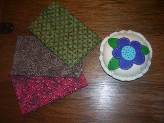 I was also thrilled to receive an fat little envelope in the mail yesterday from Andrea. I was lucky enough to win a contest on her blog and won this adorable little pincushion and wonderful fabric.